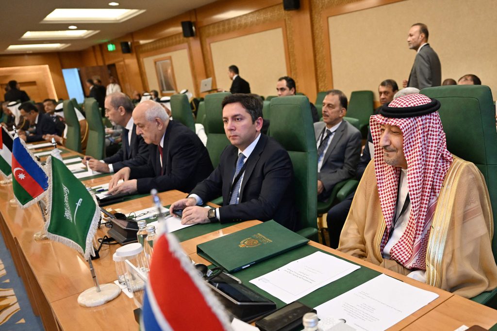 (R to L) Deputy Foreign Ministers of Saudi Arabia Waleed Al-Khuraiji and Azerbaijan Yalchin Rafiyev, Palestinian Ambassador to the United Nations Riyad Mansour and Jordanian