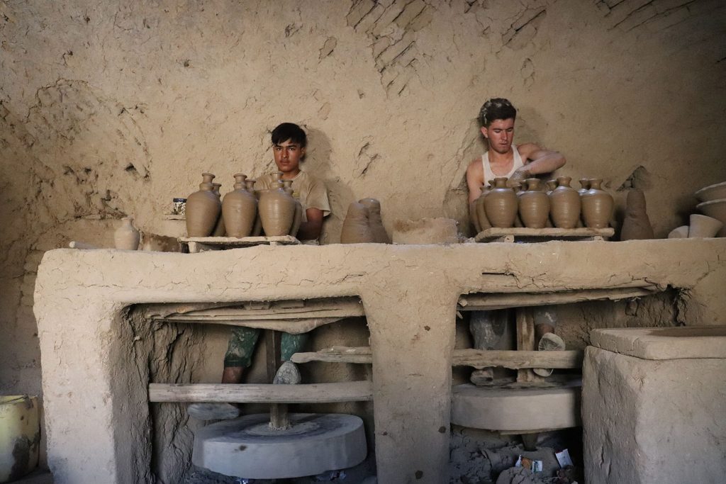 (240807) — BALKH, Aug. 7, 2024 (Xinhua) — Potters make potteries in Dawlat Abad District, north Afghanistan’s Balkh province, Aug. 7, 2024.