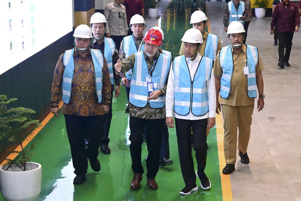 (240807) — CENTRAL JAVA, Aug. 7, 2024 (Xinhua) — Indonesia’s President Joko Widodo (R, front) inspects the factory of PT Indonesia BTR New Energy Material