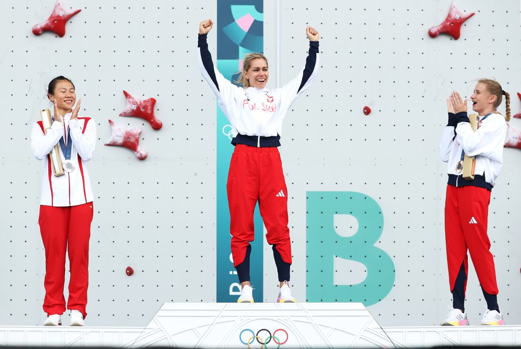 (240807) — LE BOURGET, Aug. 7, 2024 (Xinhua) — Gold medalist Aleksandra Miroslaw (C) of Poland, silver medalist Deng Lijuan (L) of China and bronze