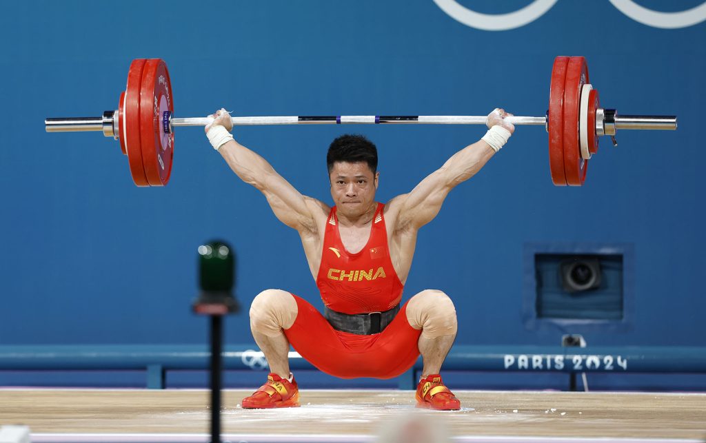 (240807) — PARIS, Aug. 7, 2024 (Xinhua) — Li Fabin of China competes during the weightlifting men’s 61kg competition at the Paris 2024 Olympic Games