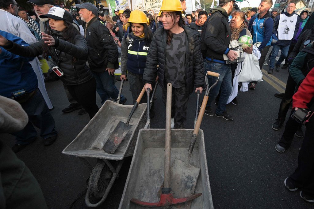 Workers take part in a march from the sanctuary at the San Cayetano Church to Plaza de Mayo Square in Buenos Aires on August 7,