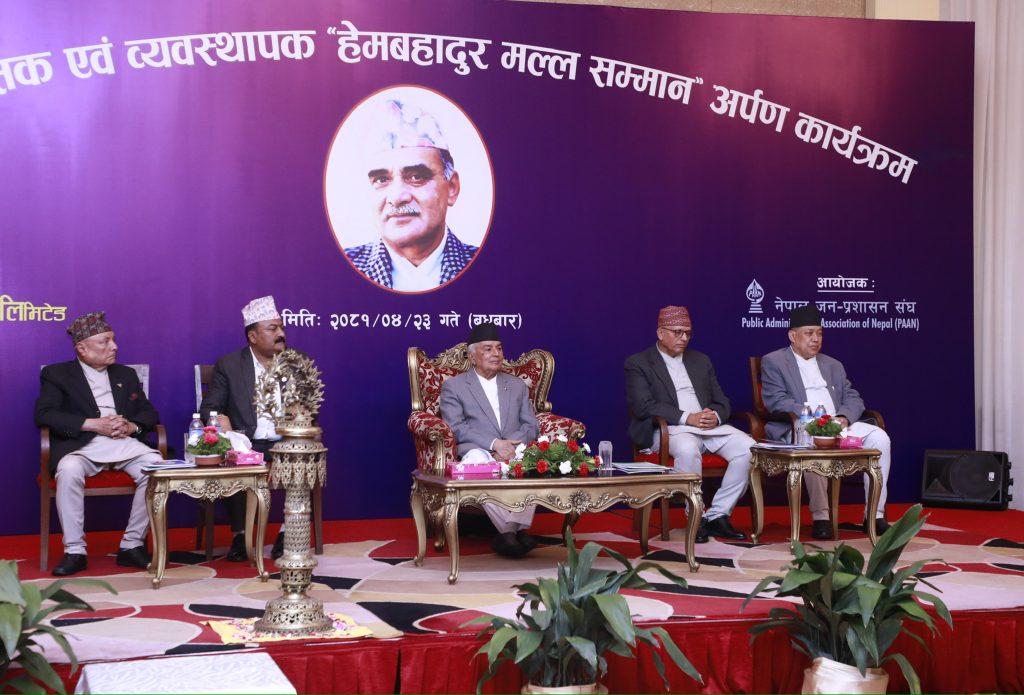 ‘The Hem Bahadur Malla Honour’, established after an able administrator Hem Bahadur Malla, has been conferred on diplomat Dr Bhesh Bahadur Thapa for the year