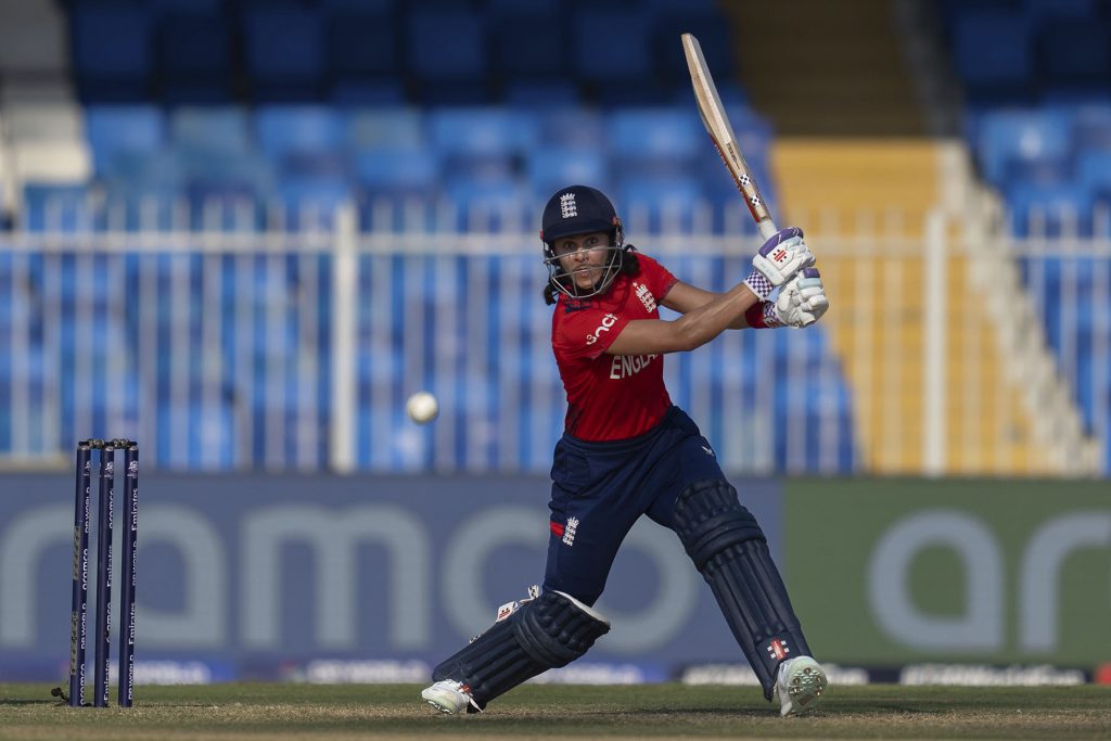 England’s Maia Bouchier bats during the ICC Women’s T20 World Cup 2024 match between Pakistan and Australia at Dubai International Stadium, United Arab Emirates, Friday,