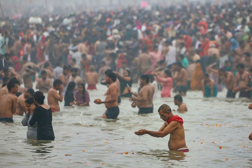 Vast crowds of Hindu pilgrims in India bathed in sacred waters as the Kumbh Mela festival opened on Monday, with organisers expecting 400 million people