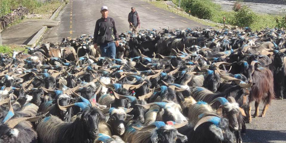 Mustang, 21 Sep: Angyal Gurung, a farmer from Chhoser in Lomanthang Rural Municipality-1 of Upper Mustang, took 10 days to bring his herd of Himalayan