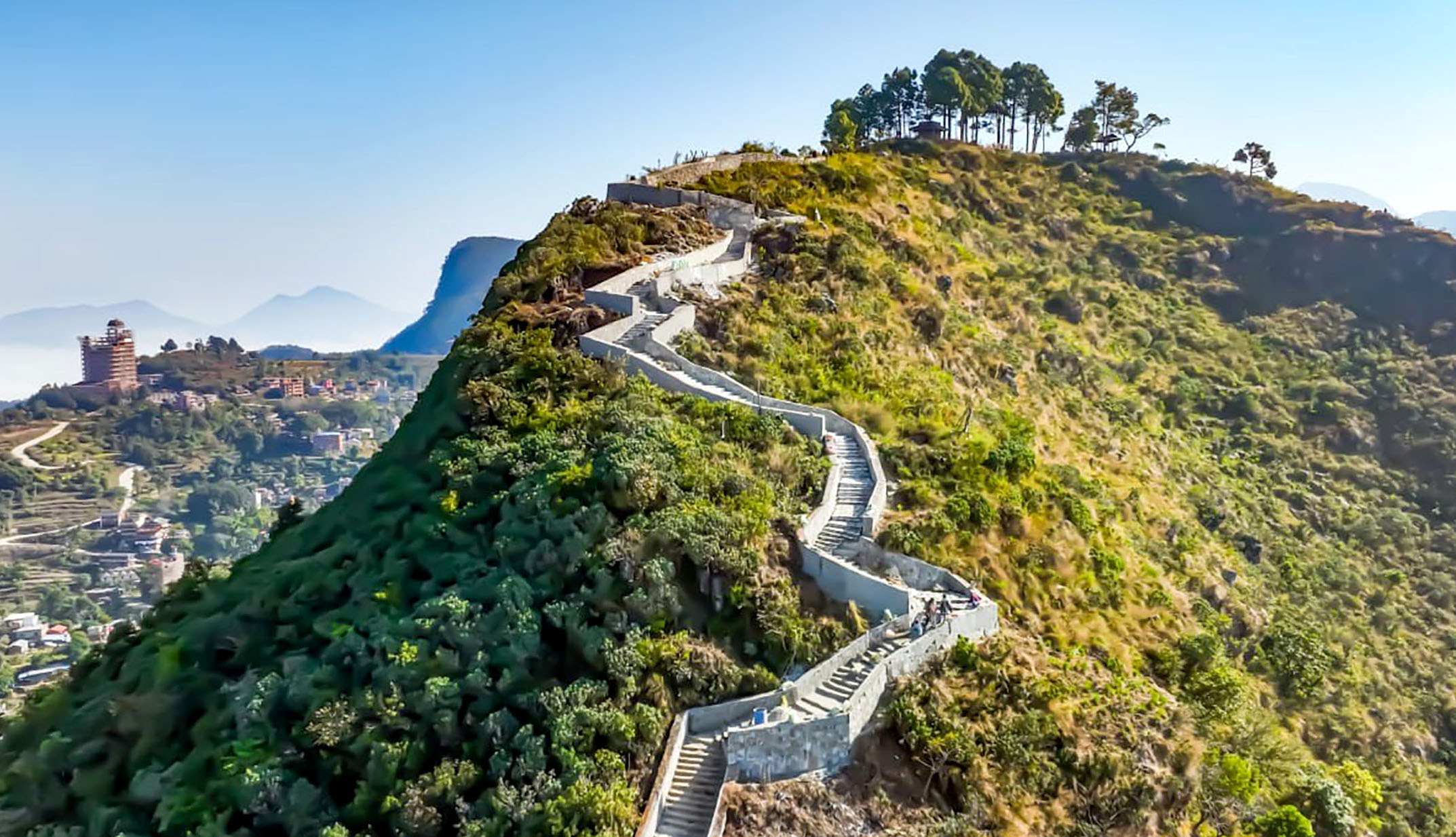 तनहुँको बन्दीपुर गाउँपालिका–२ मुकुन्देश्वरी डॉडामा निर्माण भइरहेको पदमार्ग पर्खाल (मिनी ग्रेटवाल) । बन्दीपुर आउने पर्यटकको बसाई लम्ब्याउन गाउँपालिकाले पूर्वाधार निर्माणमा जोड दिएको छ । तस्बिरः कृष्ण न्यौपाने/रासस A mini great wall is being constructed at Mukundeshwari Dauda, ​​Bandipur Rural Municipality-2, Tanahun. The rural municipality has emphasized on infrastructure construction to extend the stay of tourists visiting Bandipur. Photo: Krishna Neupane/RSS