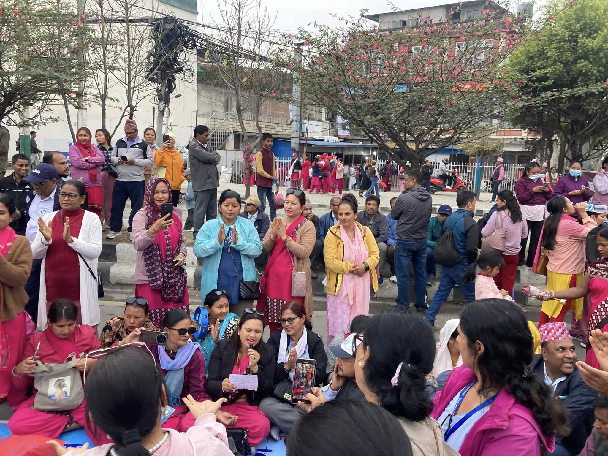 Kathmandu, 12 April: The teachers’ movement centered in the capital city, demanding the implementation of the agreements reached in the past between the Nepal Government and the Nepal Teachers’ Federation, continued today as well. Gathering at Maitighar-Babar Mahal every day at 11:00 am and holding district-wide processions with banners, speeches on the streets, singing and dancing have become the routine of the agitating teachers.