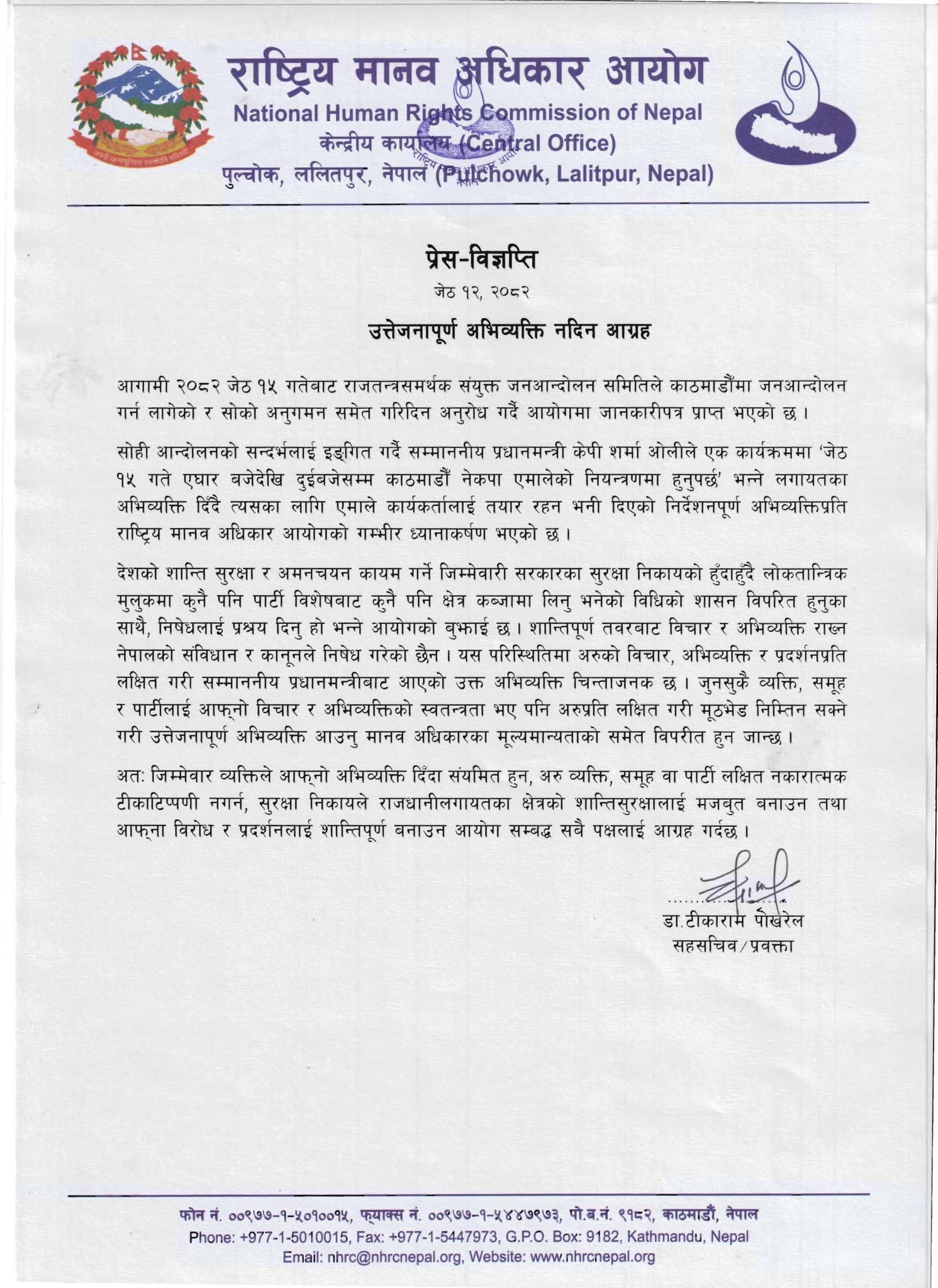“Nepal’s Constitution and laws do not prohibit expressing opinions peacefully. In this context, it is worrying that the honorable Prime Minister has made remarks targeting others’ thoughts, expressions, and demonstrations.”